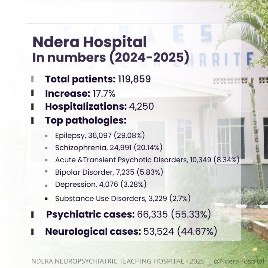 Ku wa 13 Ukwakira 2025 ibitaro bivura indwara zo mu mutwe'Ndera Neuropsychiatric Teaching Hospital 'byashyize kuri X raporo yerekana uko imibare ihagaze kuva 2024-2025.