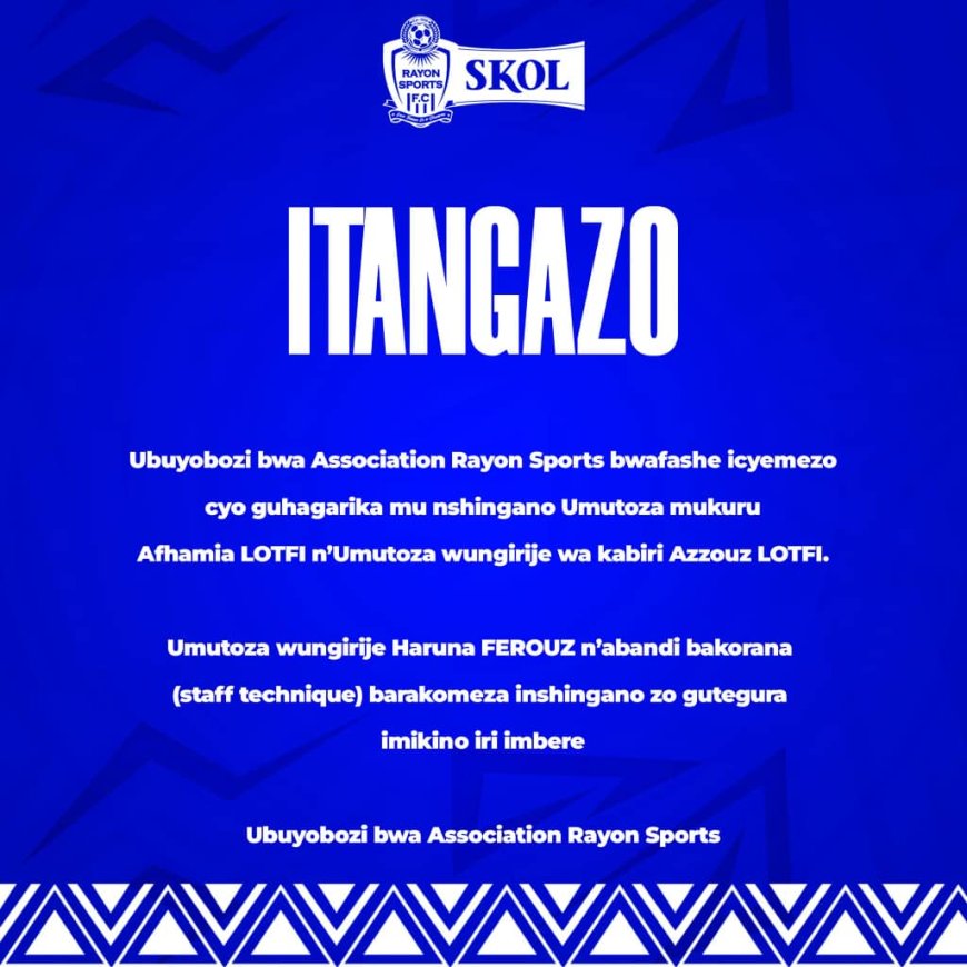 Mu ijoro ryo ku wa mbere Kandi nibwo hahise hasohoka itangazo rivuga ko ikipe ya Rayon Sports yahagaritse uwari umutoza wayo mukuru, Afhamia Lotfi ndetse n'umwungiriza bazanye witwa Azouzi Lotfi. Amakuru UKWELITIMES twamenye nuko uyu mutoza guhagarikwa, ari intambwe ya mbere iyi kipe iteye yo gutandukana nawe.