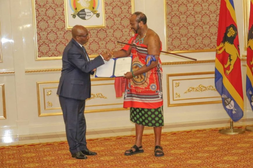 Ambasaderi Col (Rtd) Donat Ndamage, yashyikirije Umwami Mswati III wa Eswatini impapuro zimwemerera guhagararira u Rwanda muri icyo gihugu, mu muhango wabereye mu Ngoro y’Umwami iherereye i Lozita ku wa 06 Ugushyingo 2025.