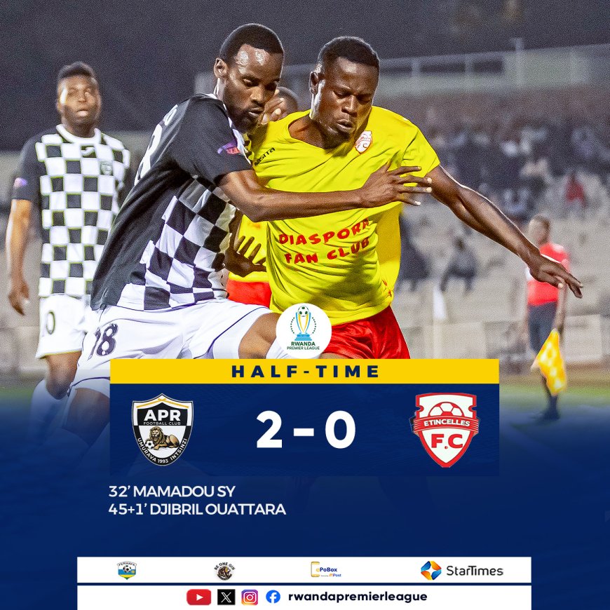 Igice cya mbere hagati ya APR FC na Etincelles FC cyarangira APR FC yabonye ibitego 2-0. Ni igice twabonye APR FC itsinda ariko umupira mu kibuga wabonaga ikipe zombi zirimo kunganya imbaraga.