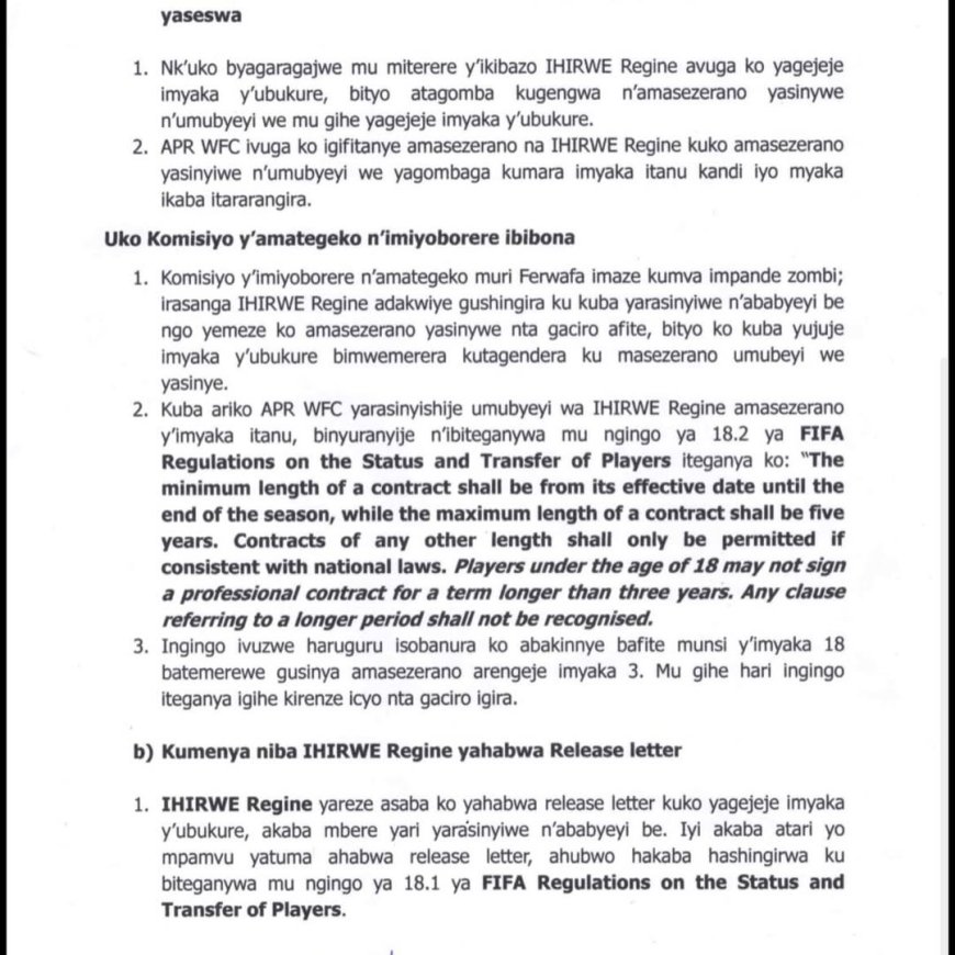 Ihirwe Régine wahoze akinira APR WFC, yari yarasinye amasezerano mu 2022 akiri muto abifashijwemo n’ababyeyi be. Nyuma yo gukura, yashatse kuvugurura amasezerano ariko ikipe irabyanga, ahitamo kuyivamo.