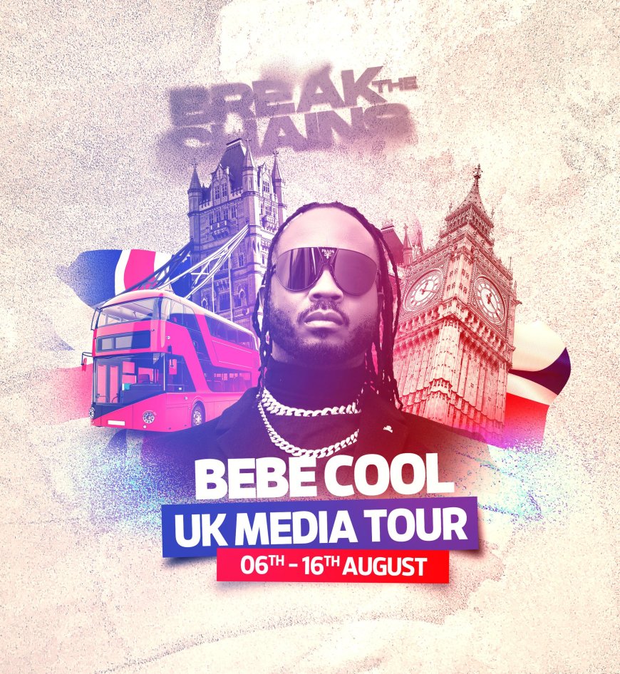 Mu ijoro ryo ku wa 5 Nyakanga 2025 nibwo Bebe Cool yageze mu Bwongereza aho atangira kuzenguruka ibitangazamakuru kuva ku wa 6-16 Kanama 2025. Ahafite gahunda ndende igamije kwamamaza 'Break The Chains' mu Bwongereza nk'igihugu gituwe na Diaspora nyinshi y'Abakomoka muri Nigeria, Uganda, Kenya, n'ibindi bihugu.