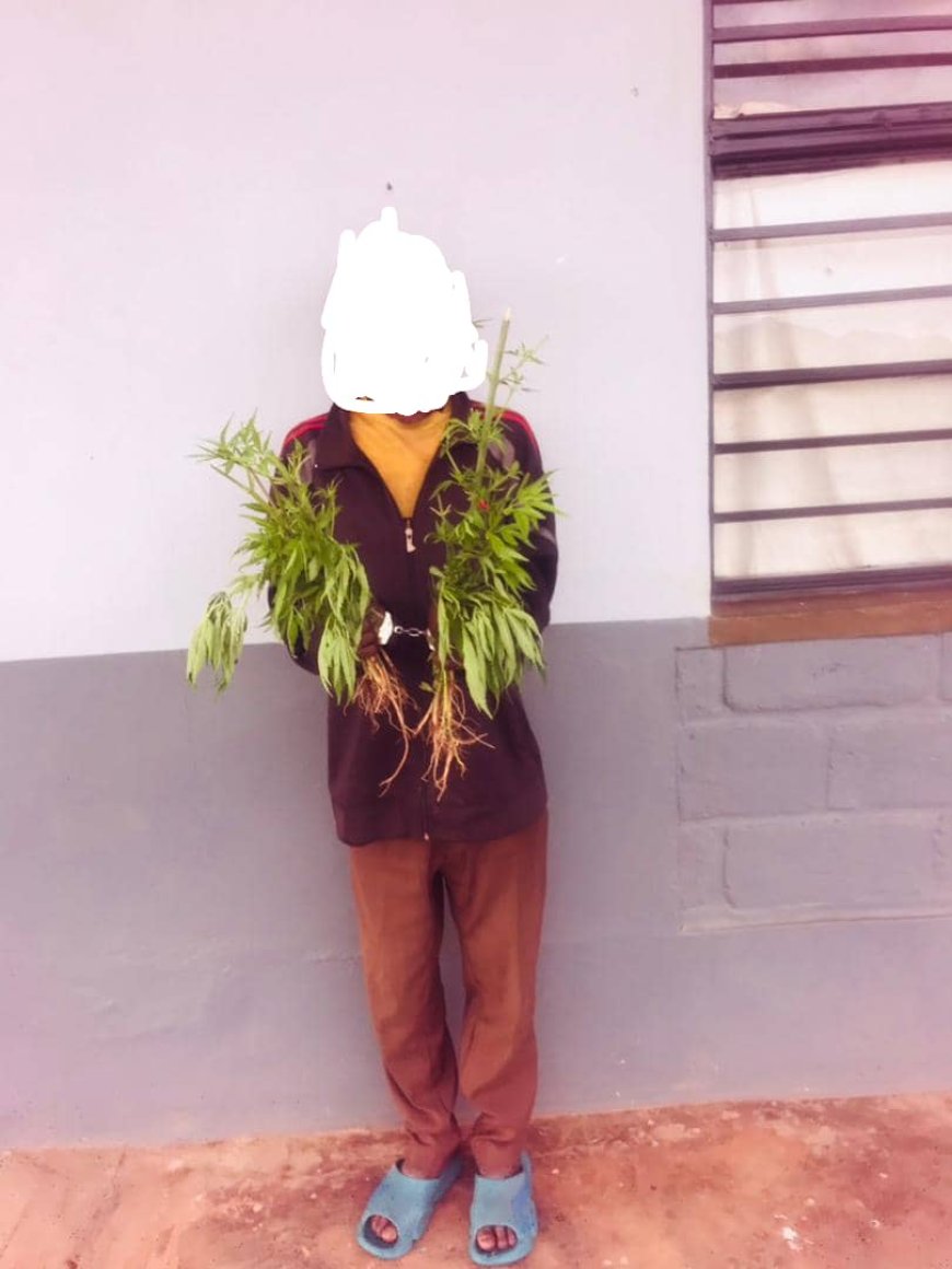 Polisi ikorera mu karere ka Burera yafatanye umugabo ibiti 17 by’urumogi ruhinzwe mu murima w’ibishyimbo.