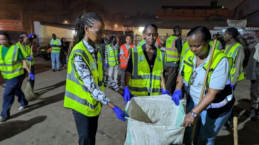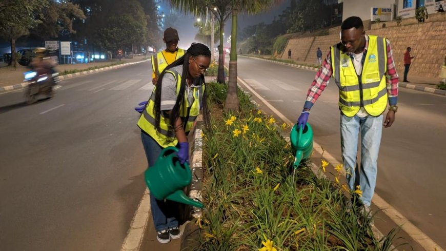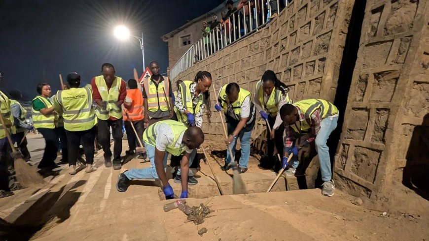 Aya mafoto yafashwe muri gahunda ya Muhima mu isura y'Ijoro aho urubyiruko rkora umuganda nomu masaha y'ijoro