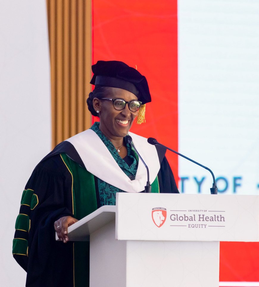Rwanda’s First Lady, Jeannette Kagame, called for a renewed commitment to health equity during the University of Global Health Equity’s (UGHE) graduation ceremony and 10th anniversary celebrations in Burera District.