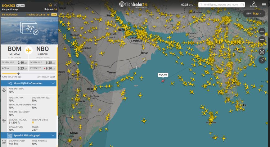Kenya Airways flight KQ203, carrying the body of former Prime Minister Raila Odinga from Mumbai to Nairobi, is the world’s most tracked flight today. The plane departed India at 6:23 a.m. (IST) and is expected to land at JKIA at 9:30 a.m. (EAT), where full state honours await the late leader.