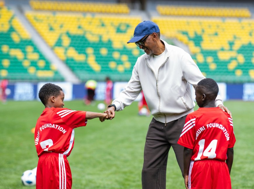 “Stadiums are there, footballs are there, and you want to play. What remains is your commitment,” President Kagame told the children, urging them to value teamwork and collective success. He emphasized that football is not about individual brilliance alone, but about working together towards a shared goal.