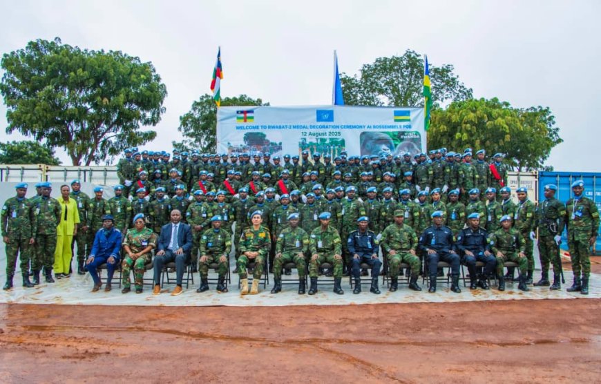 On August 12, 2025, Rwandan Defence Forces (RDF) soldiers of RWABAT-2, deployed on a peacekeeping mission under MINUSCA in the Central African Republic (CAR), were awarded medals in recognition of their efforts to restore and maintain peace in the country.