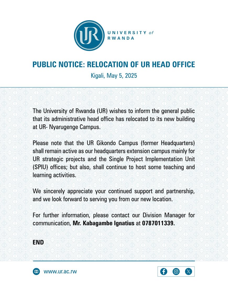 UNIVERSITY OF RWANDA: RELOCATION OF UR HEAD OFFICE