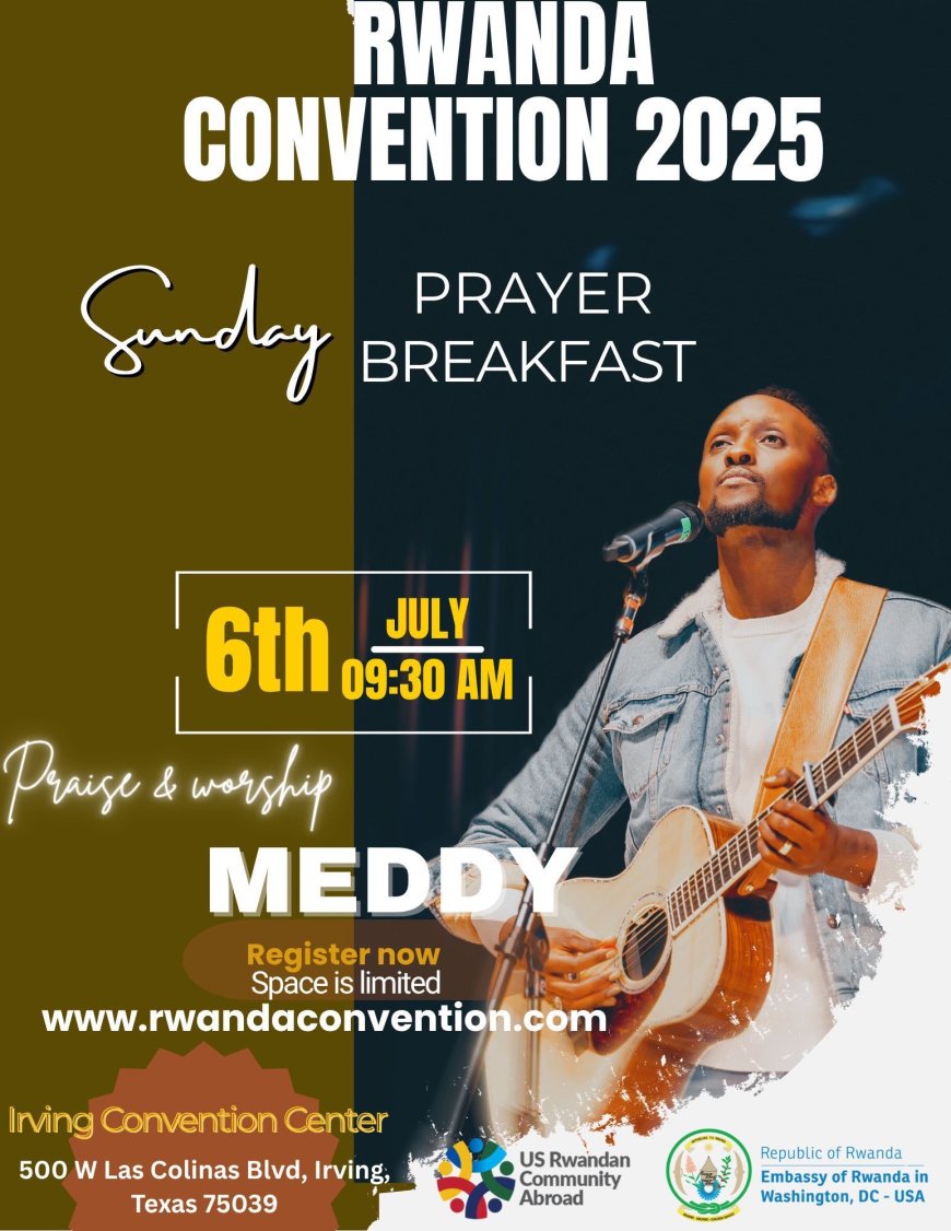 A closing prayer breakfast will be led by Apostle Paul Gitwaza, with popular artist Meddy leading worship.