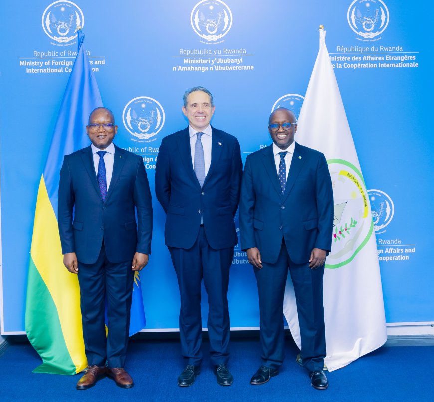 Minisitiri w’ingabo Juvenal Marizamunda, hamwe na Minisitiri w’ububanyi n’amahanga Olivier Nduhungirehe, bakiriye Ambasaderi Johan Borgstam, uhagarariye Umuryango w’Ubumwe bw’u Burayi (EU) mu karere k’Ibiyaga bigari, ubwo yatangiraga uruzinduko rw’iminsi ine mu Rwanda.