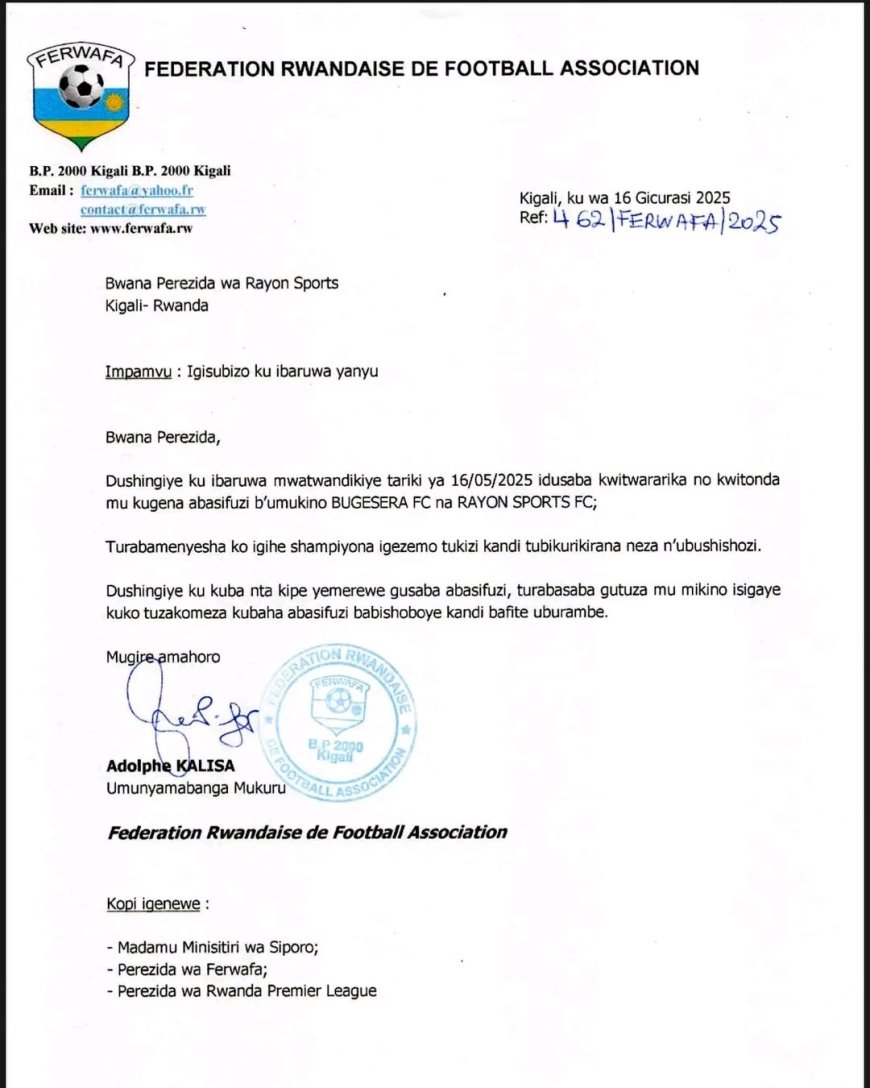 Mu ijoro ryo ku wa gatanu tariki 16 Gicurasi 2025, FERWAFA, yahise isubiza Rayon Sports ibamenyesha ko igihe tugezemo nka FERWAFA bakizi ndetse ko bari kubikorana ubushobozi kugirango shampiyona izarangire neza.