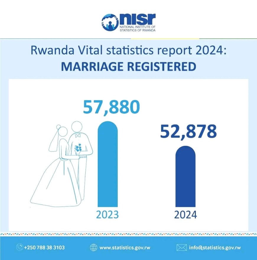 Ikigo cy’Igihugu Gishinzwe Ibarurishamibare mu Rwanda (NISR) kigaragaza ko hagati y'umwaka wa 2023 na 2024, mu Rwanda abasezeranye byemewe n'amategeko bagabanutseho abarenga ibihumbi 5.