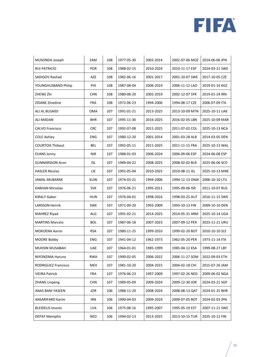 Ni urutonde rwakozwe tariki 28 Ukwakira ariko rusakara cyane ku wa Kane tariki 30 Ukwakira 2025, aho impuzamashyirahamwe y'umupira w'amagaru ku Isi ibinyujije ku mbuga nkoranyambaga zayo yatangaje abakinnyi bamaze gukina imikino myinshi mu ikipe y'igihugu yaba abagikina ndetse n'abaretse umupira w'amagaru.