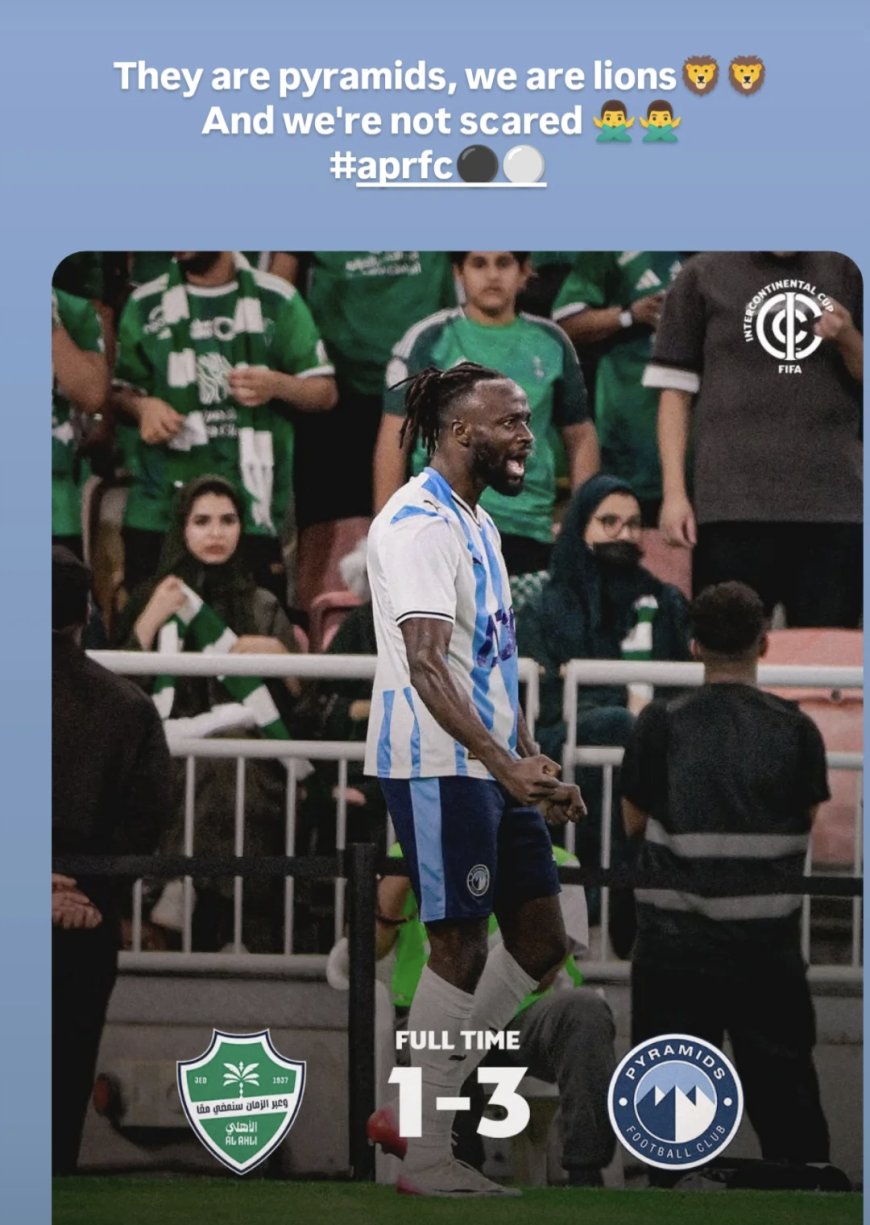 Ubu butumwa Memel Dao yabuherekesheje ifoto igaragaza umukino Pyramis FC yatsinzemo Al Ahli Saudi ibitego 3-1 harimo ibitego bitatu byatsinzwe na Fiston Kalala Mayele.