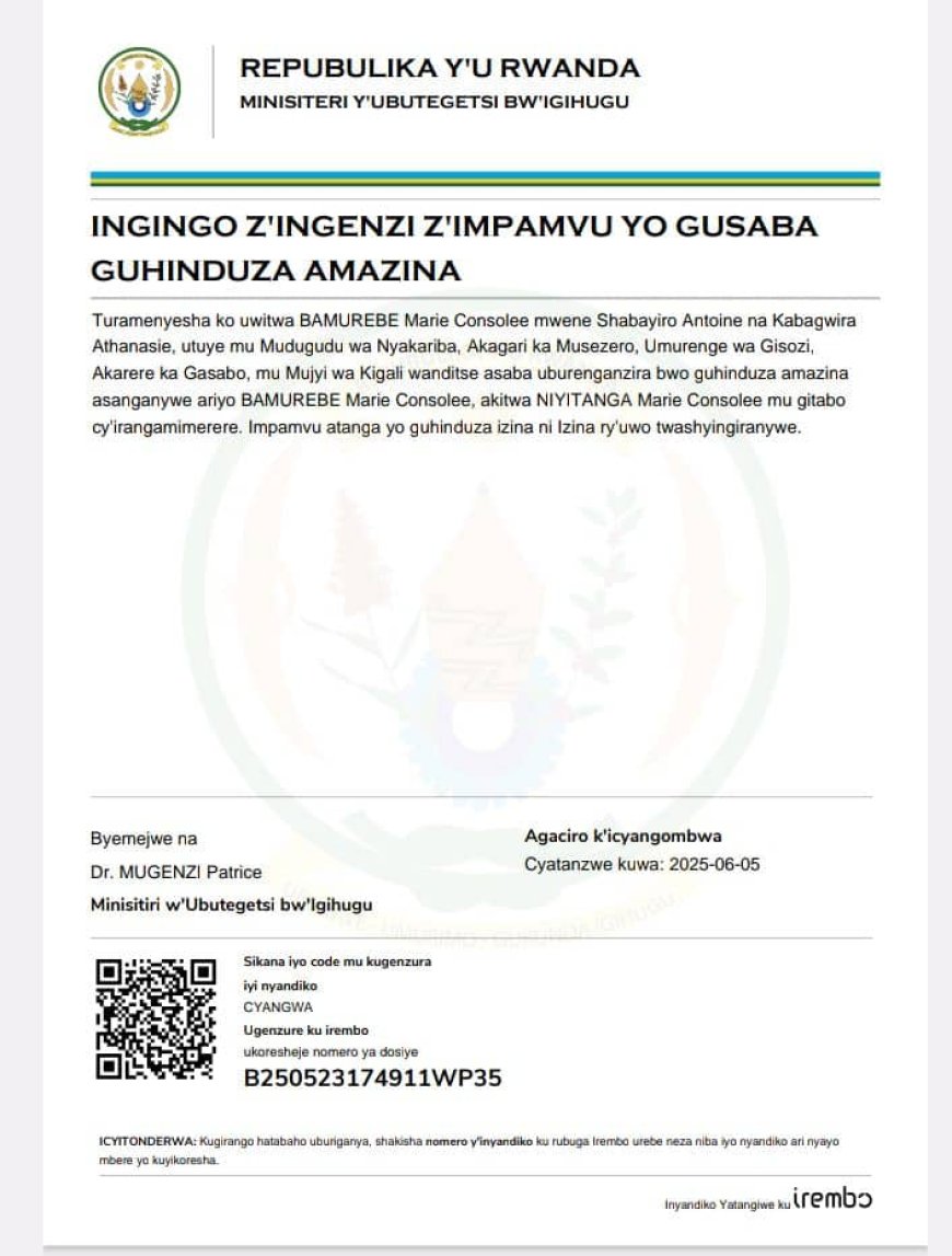 Ingingo z’ingenzi z’impamvu BAMUREBE Marie Consolee, asaba guhindura amazina akitwa NIYITANGA Marie Consolee