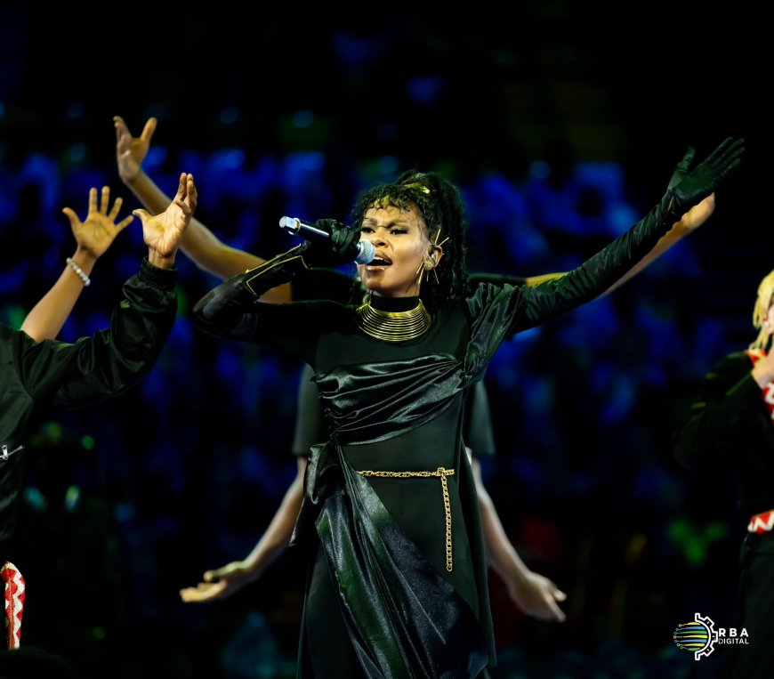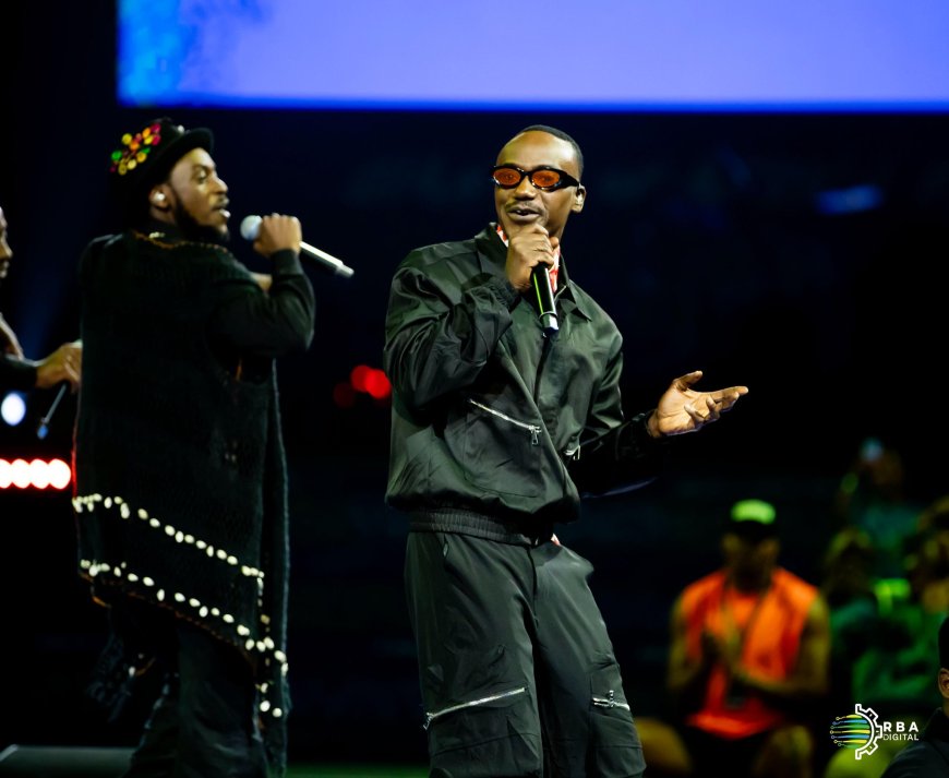Umuhanzi Mani Martin, Alyn Sano n’abanyempano batsinze mu Irushanwa rya Art Rwanda-Ubuhanzi ritegurwa na Imbuto Foundation, basusurukije abitabiriye Inama y’Ihuriro Mpuzamahanga ry’Urubyiruko ruri i Kigali mu Iserukiramuco rya Giants of Africa 2024.