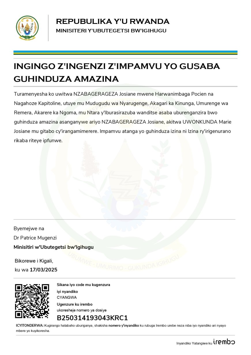 ITANGAZO RYO GUHINDUZA AMAZINA