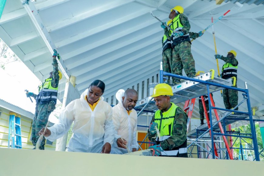 Itsinda ry’Abahanga mu by’ubwubatsi ry’Ingabo z’u Rwanda (RDF) riri muri Jamaica rifatanyije n’abahanga mu by’ubwubatsi bo mu Ngabo za Jamaica (JDF), bakoze Umuganda ku Kigo cya Blessed Assurance.