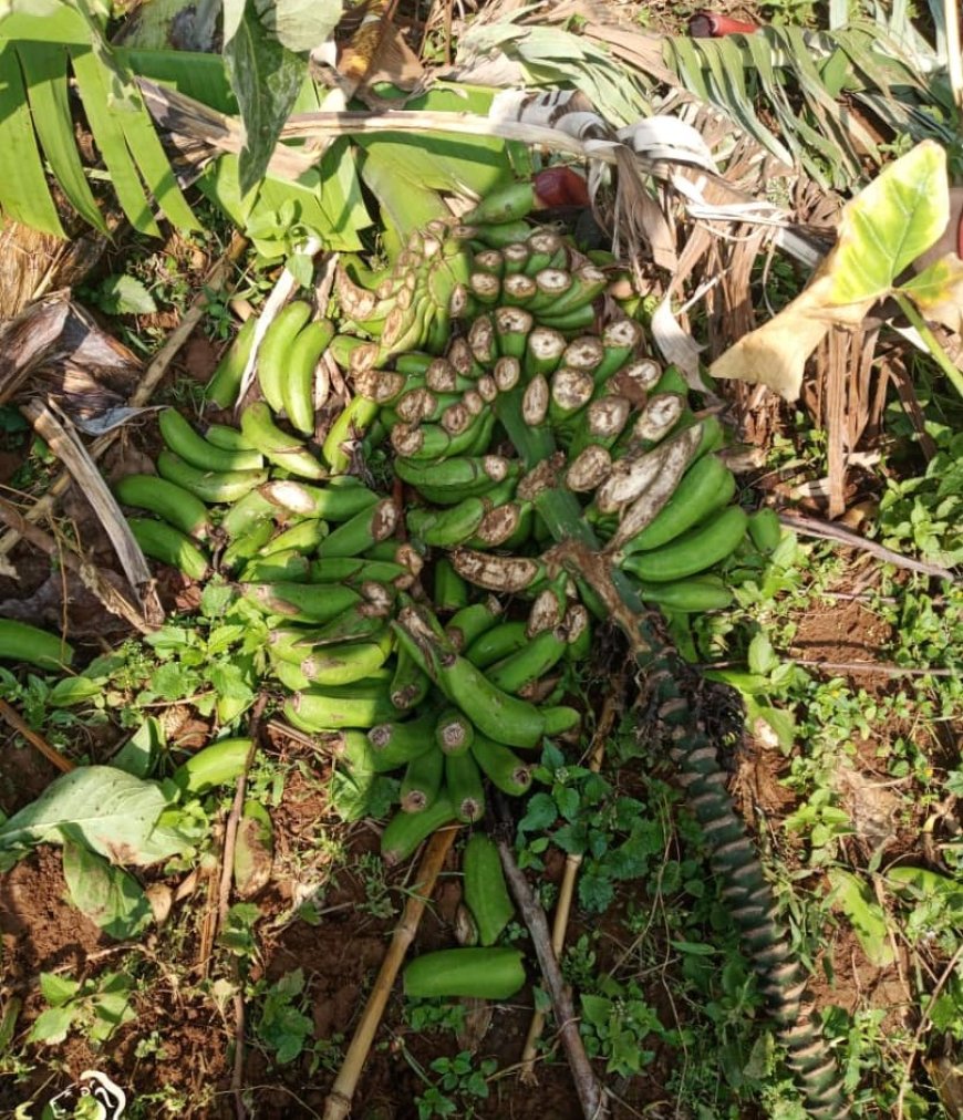 Umuturanyi wabo wavuganye n’itangazamakuru yagize ati: “Ni amafaranga 35.000 y’ikimina twumvise ko sewabo yagombaga kumuha ntayamuhe yose, umukobwa biramurakaza arikubita arayanga, bakomeje gutongana umukobwa afata umupanga ajya mu rutoki rwa sewabo atemagura insina 18 ziriho ibitoki arabirambika, na byo arabitemagura, anatema izindi 36 aracika.’’