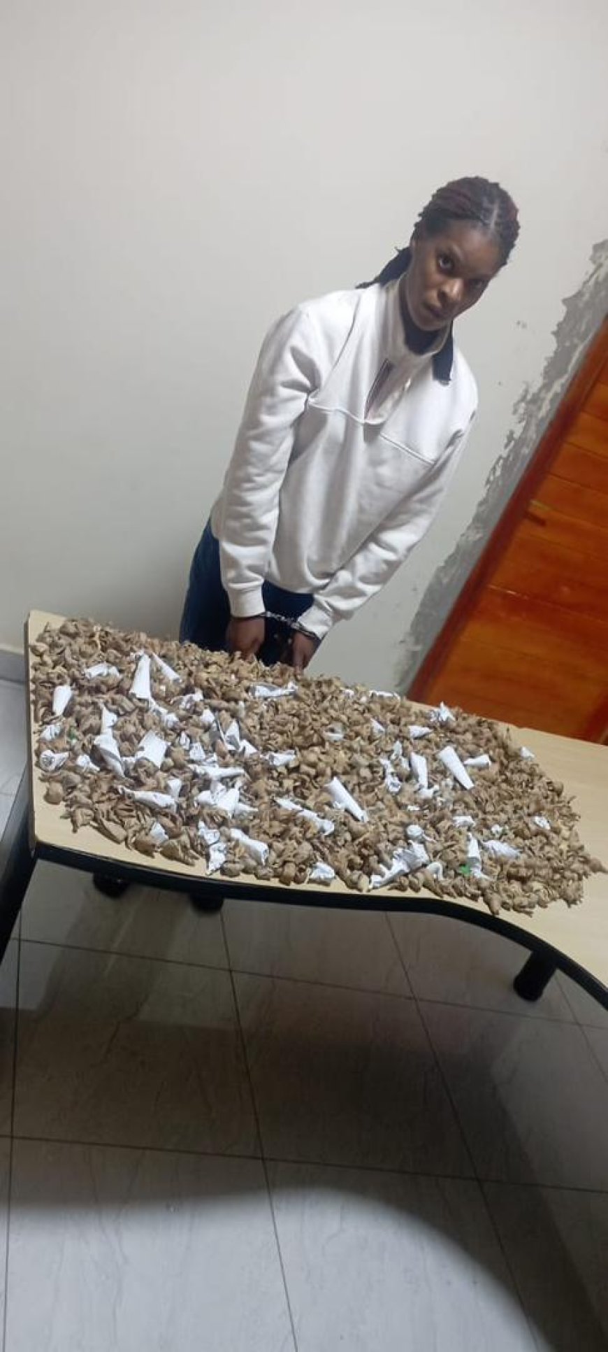 Polisi y’u Rwanda ivuga ko Ngirimbabazi Shallon yasanganywe ububiko bw’urumogi mu Kagari ka Gatare, Umurenge wa Niboye mu Karere ka Kicukiro, ikaba yaramuguye gitumo iwe afite udupfunyika 851.