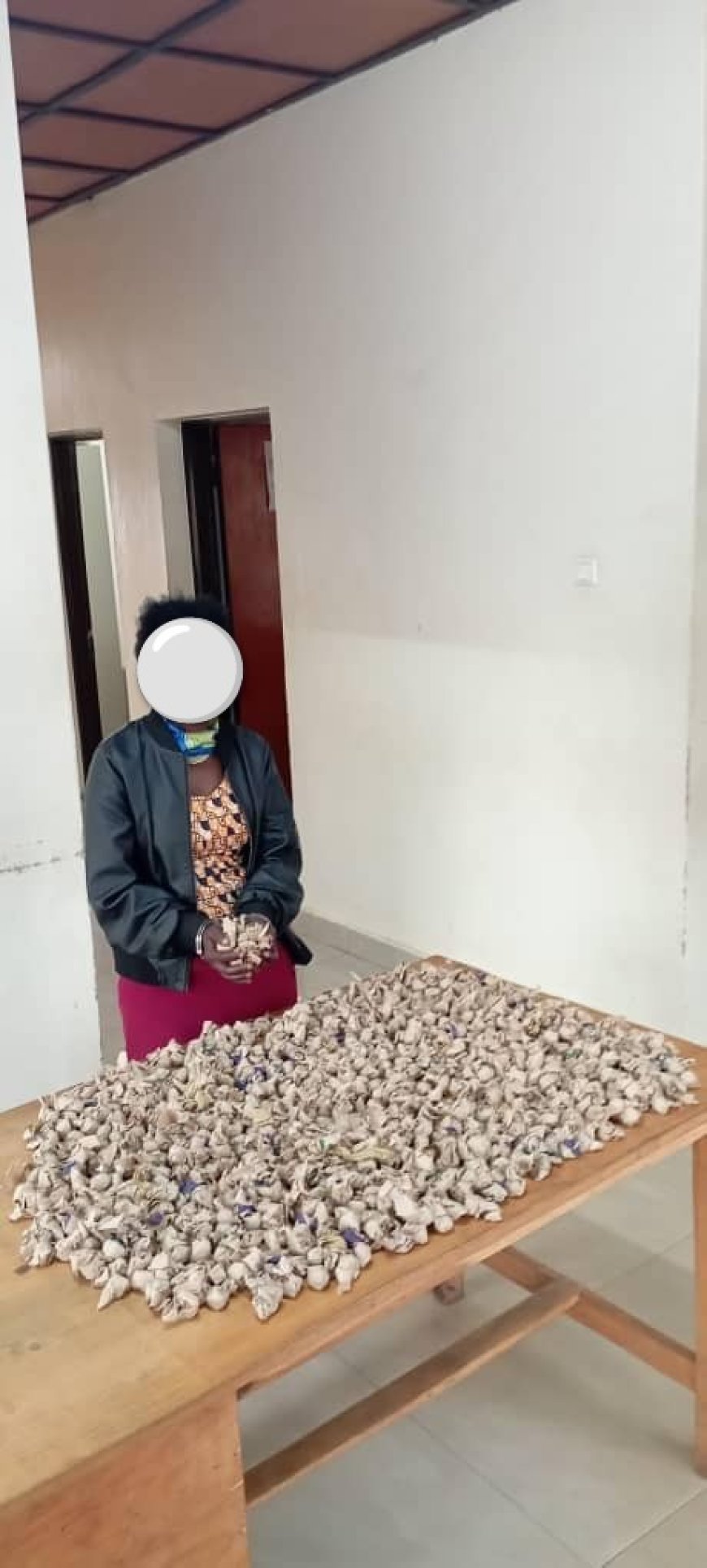 Mu mujyi wa Kigali, Polisi yafashe Mukandayisenga Solange wari ufite udupfunyika 800 tw'urumogi harimo 750 yari yarahishe ku musego w'uburiri ndetse na 50 yari yarahishe mu murima w'ibigori.