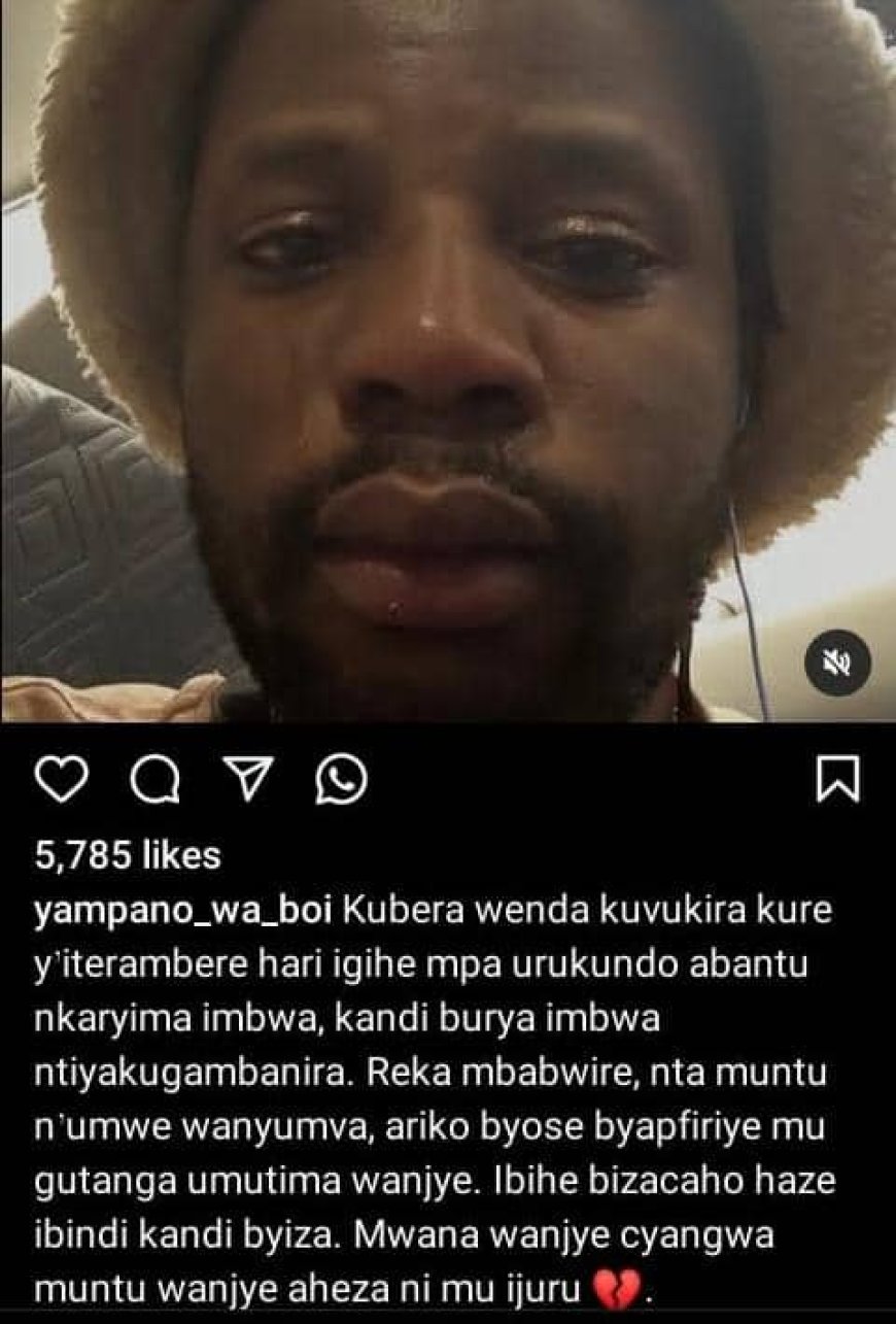 Umuhanzi Yampano yerekanye ibimenyetso bibanziriza icyiciro cya nyuma cyo kwiyambura ubuzima,ibizwi nko kwiyahura. Ku wa 04 Ukuboza 2025 Yampano yafashe ifoto ari gusuka amarira, ayihererekesha amagambo arimo gusezera umwana we.