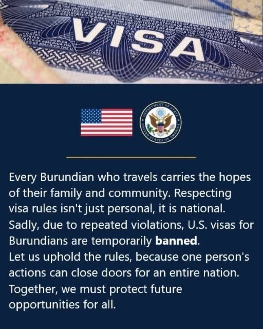 Itangazo ry’Ambasade y’Amerika mu Burundi yashyize hanze, yagaragaje impungenge ku bijyanye n’imikoreshereze mibi ya visa n’ingaruka mbi bishobora kugira ku gihugu cyose.