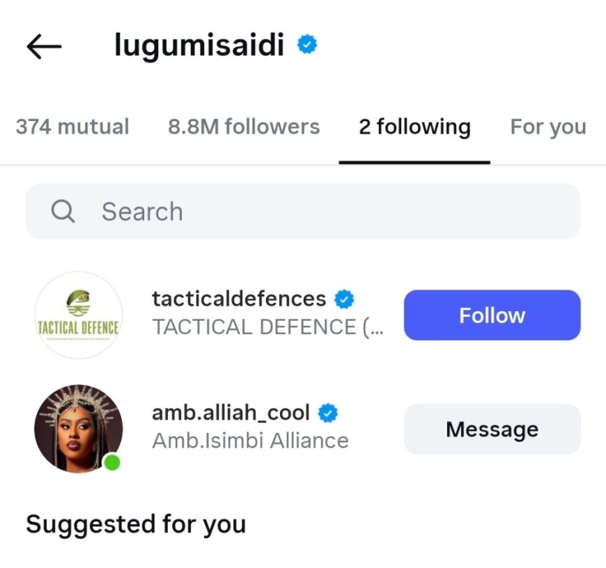 Umucuruzi w'imbunda wo muri Tanzania Lugumi Saidi yatangiye gukurikira Alliah Cool ku rubuga nkoranyambaga rwa Instagram.