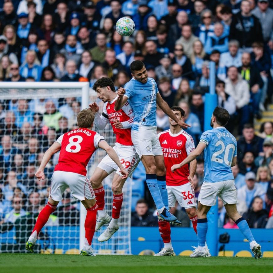 Ni umukino wari utegerejwe cyane, aho aya makipe yombi ahanganiye igikombe, maze Manchester City ibasha kubona intsinzi y’ingenzi ituma icyizere cyo kucyegukana gikomeza kuzamuka, igitego cya mbere cya Manchester City cya mbere cyabonetse ku munota wa 16" gitsinzwe na Ryan Cherki, atungurana atsinda kare mu mukino, Arsenal ntiyacitse intege, kuko yaje kwishyura igitego binyuze kuri Kai Havertz, agarura icyizere ku bafana bayo nyuma yamakosa yarakozwe n'umuzamu wa Manchester city, igice cya mbere cyirangiye ari 1-1.