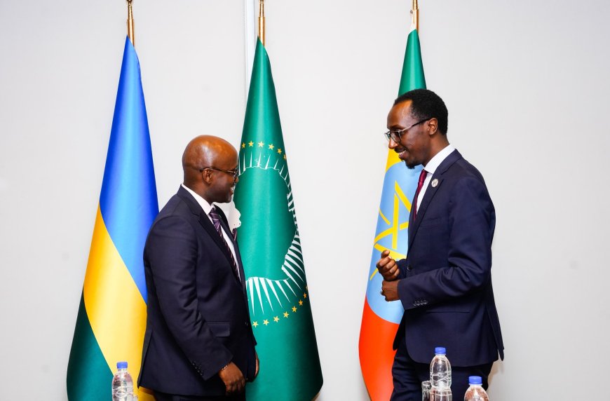 Ku ruhande rw’Inama ya 48 y’Inama y’Abaminisitiri b’Ububanyi n’Amahanga b’Umuryango wa Afurika Yunze Ubumwe, Minisitiri w’Ububanyi n’Amahanga w’u Rwanda, Amb. Olivier Nduhungirehe, yagiranye ibiganiro na Minisitiri w’Ububanyi n’Amahanga wa Ethiopia, Amb. Gedion Timothewos Hessebon.