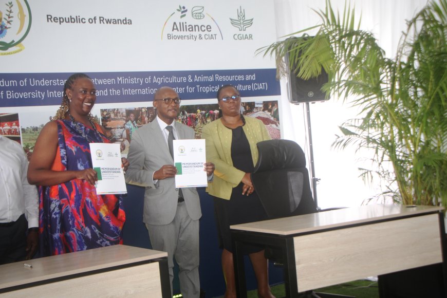 Minisiteri y’Ubuhinzi n’Ubworozi (MINAGRI) n’Umuryango The Alliance of Bioversity International and CIAT, bongeye amasezerano y’imikoranire (MoU) hagamijwe cyane cyane kongera guhamya ubushake bwo gukomeza ubufatanye mu guhindura sisiteme z’ibiribwa mu Rwanda hanafungurwa ibiro bishya by’iki kigo mu gihugu.