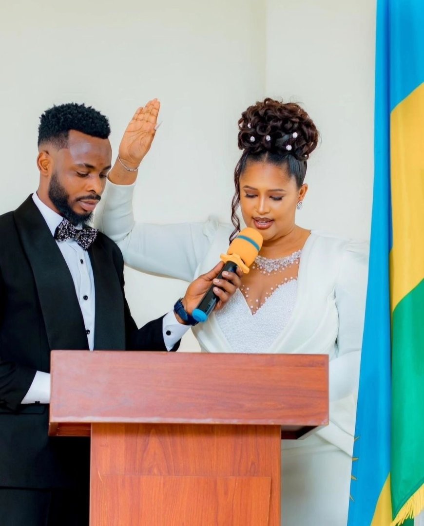 Nyuma y'umwaka urengaho gato, Mugisha Gilbert na Mpinganzima baje kujya gusezerana mu murenge aho byabereye mu murenga wa Kinyinya mu karere ka Gasabo. Mpinganzima ubusanzwe yakuranye na Mugisha Gilbert baza gutandukana umwe asigara hano mu Rwanda undi yerekeza mu gihugu cya Canada.