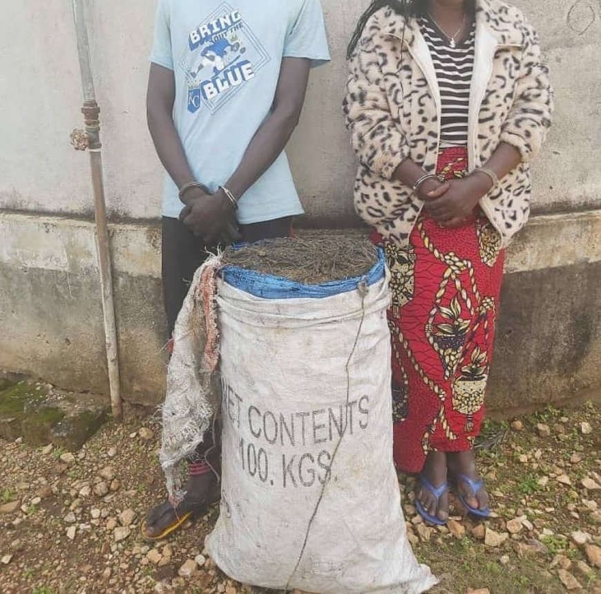 Polisi y’u Rwanda ikorera mu Karere ka Muhanga yafatiye mu cyuho umugore w’imyaka 55 yakira umufuka w’urumogi rupima ibilo 25 yari azaniwe n’umusore w’umunyonzi w’imyaka 30, agamije kurucuruza.