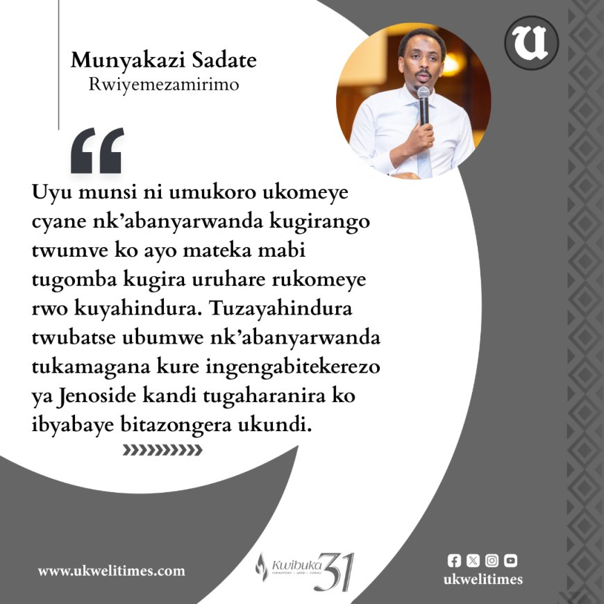 Rwiyemezamirimo mu bijyanye n’ubwubatsi hano mu Rwanda, Munyakazi Sadate, yahaye ubutumwa abanyarwanda bose muri ibi bihe turimo byo kwibuka ku nshuro ya 31 Jenoside yakorewe abatutsi mu 1994.
