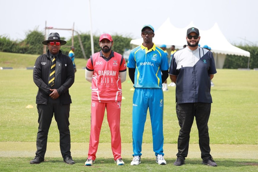 Bahrain yahise ihitamo gutangira ikubita udupira [bowling] ari na ko ibuza u Rwanda gushyiraho amanota menshi. Bivuze ko ikipe y’Igihugu y’u Rwanda yatangiye ikubita udupira.