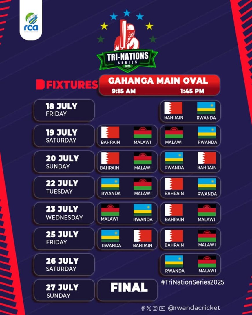 Ni umukino wabaye ku wa Gatanu tariki 18 Nyakanga 2025. Ni irushanwa mpuzamahanga rya Cricket rizwi nka TRI-Nations Series 2025, riri kubera hano mu Rwanda. Iri rushanwa riri guhuza ibihugu bitatu birimo u Rwanda rwakiriye irushanwa, Malawi na Bahrain iryitabiriye bwa mbere.