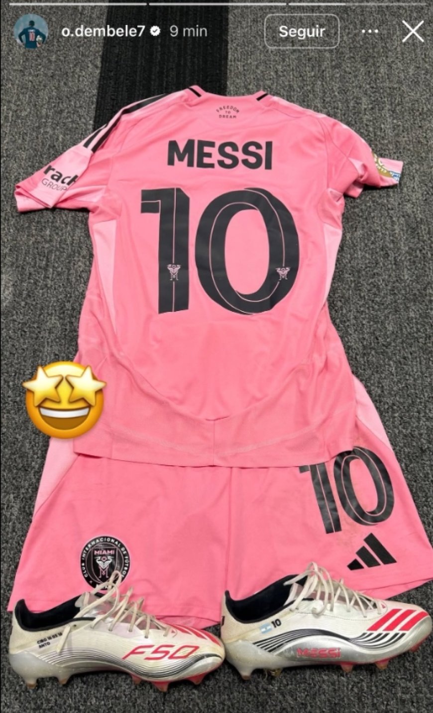 Ousmane Dembélé yereka abamukurikira iyi myambaro yahawe na Lionel Messi yagize amagambo atangaza. Yagize ati " Mbega ukuntu ari byiza kongera kubonana nawe, Messi, umukinnyi mwiza w'ibihe byose. Nizeye ko urakomeza gukora amateka muri Inter Miami nkuko ubikoze mu gikombe cy'isi cy'ama-Club."