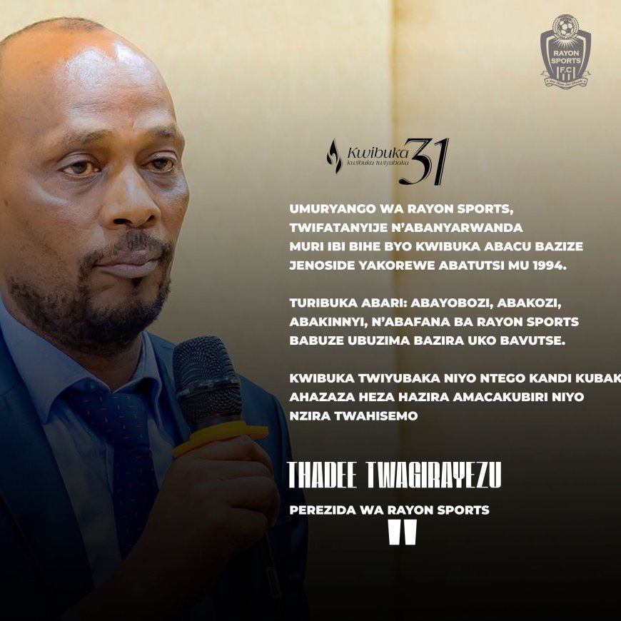 Perezida w'umuryango wa Rayon Sports, Twagirayezu Thadee, yageneye ubutumwa abanyarwanda byumwihariko abakunzi b'iyi kipe muri ibi bihe turimo byo kwibuka ku nshuro ya 31 Jenoside yakorewe abatutsi mu 1994.