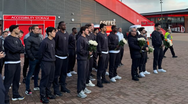 Ku itariki ya 13 Mata 2026, nibwo abakinnyi ba Paris Saint-Germain basuye ahashyizwe urwibutso rwa Diego Jota imbere ya stade ya Anfield, bashyiraho indabo mu kumwibuka.