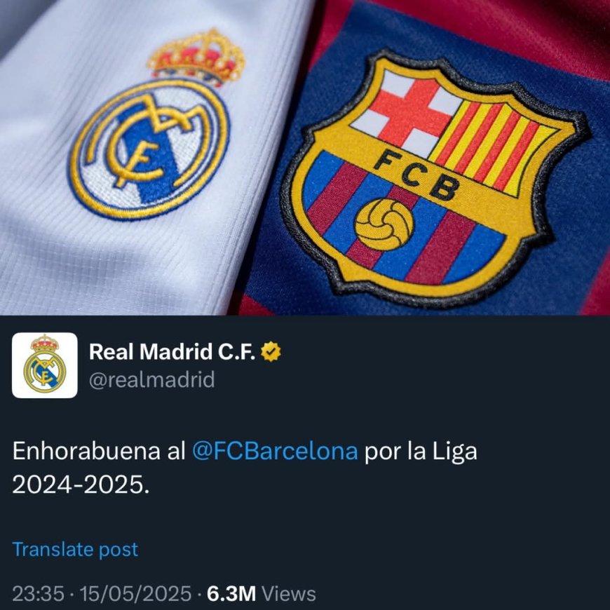Mu magambo yanyujije ku mbuga nkoranyambaga zayo yagize iti “ Turabashimiye FC Barcelona ku gikombe cya shampiyona mutwaye.”