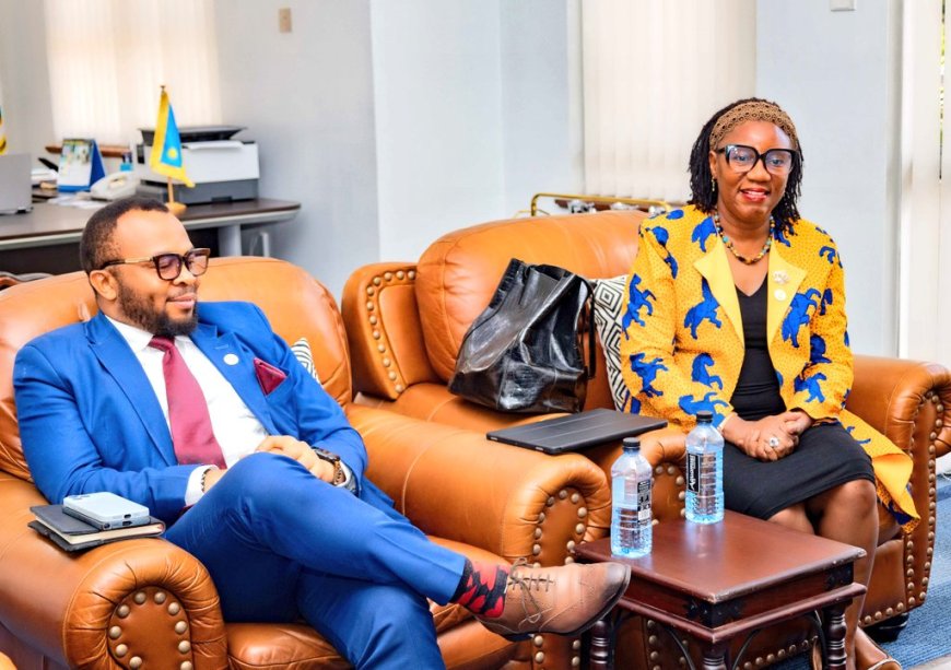 High Commissioner Ernest Rwamucyo engages in discussions with Dr. Mazyanga Lucy Mazaba during her courtesy call at the Rwanda High Commission in Nairobi.