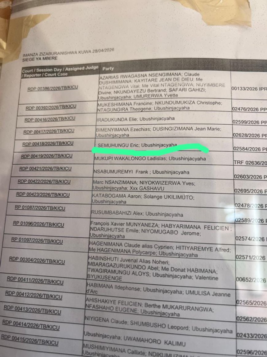 Mu gitondo cyo ku wa 28 Mata 2026 Eric Semuhungu yitabye Urukiko rw’Ibanze rwa Kicukiro aho agiye kuburana ku byaha birimo,icyaha cyo gukoresha undi imibonano mpuzabitsina ku gahato, icyaha cyo gushyira hanze amashusho yerekeranye n’imikoreshereze y’ibitsina hakoreshejwe mudasobwa cyangwa se urusobe rwa mudasobwa, n’icyaha cyo gukangisha gusebanya.