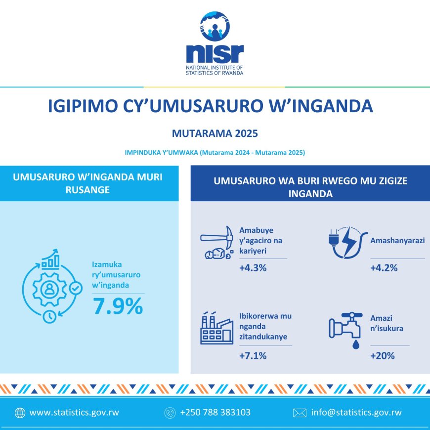 Raporo igaragaza ko umusaruro w’inganda mu rwego rwemewe n’amategeko wazamutseho 7.9% ugereranyije n’umwaka ushize, aho urwego rw’ubucukuzi bw’amabuye y’agaciro n’ubw’imicanga rwagize uruhare rugaragara muri uwo musaruro.