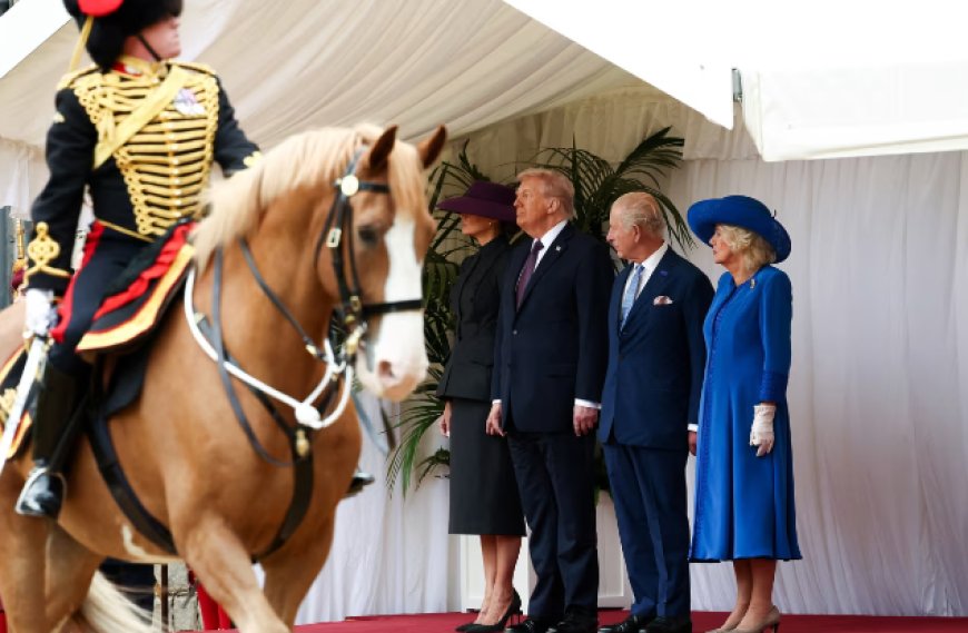 Umwami Charles III n’Umwamikazi Camilla bakiriye mu cyubahiro Perezida Trump n’umugore we, nyuma y’uko bari babanje kwakirwa bwa mbere n’Igikomangoma William na Kate Igikomangomakazi ubwo indege ya Trump yamaraga kugwa mu ngoro y’ibwami.