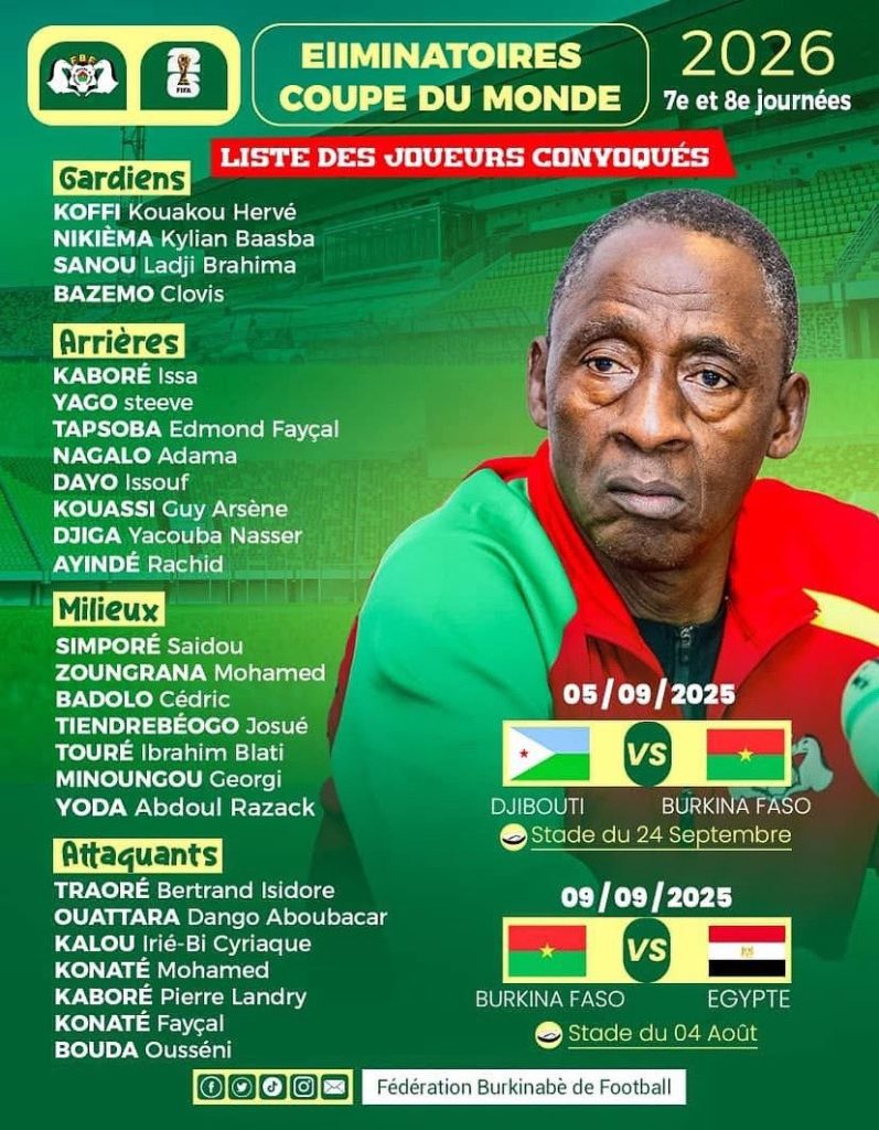 Ikipe y’igihugu ya Burkina Faso igiye gutangira kwitegura imikino 2 izakinamo na Djibouti tariki 5 Nzeri 2025 ndetse n’uwo izakina na Misiri tariki 9 Nzeri 2025.