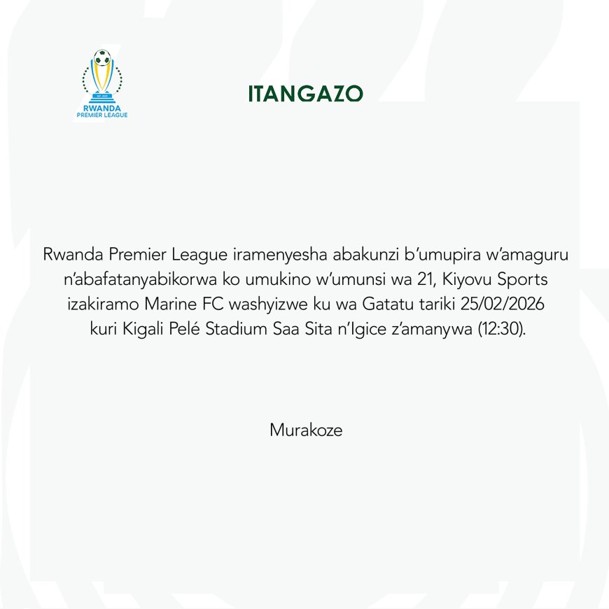 Ku wa mbere tariki 23 Gashyantare 2026, nibwo Rwanda Premier league ishinzwe imitegurire ya Shampiyona y'u Rwanda, yatangaje ko uyu mukino hagati ya Kiyovu Sports na Marine FC ugomba kwimurwa ukava ku wa kabiri ugashyirwa ku wa Gatatu.
