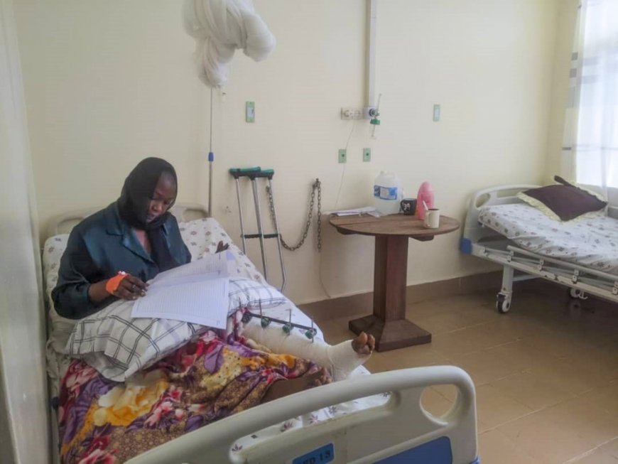 Niyonagize Adeline, urimo gusoza icyiciro cya Kabiri cy’amashuri yisumbuye, yakoze ibizamini bya Leta ari mu bihe bidasanzwe bitewe n’uko agifite imvune n’ibikomere byaturutse ku mpanuka yakoze akavunika akaguru.